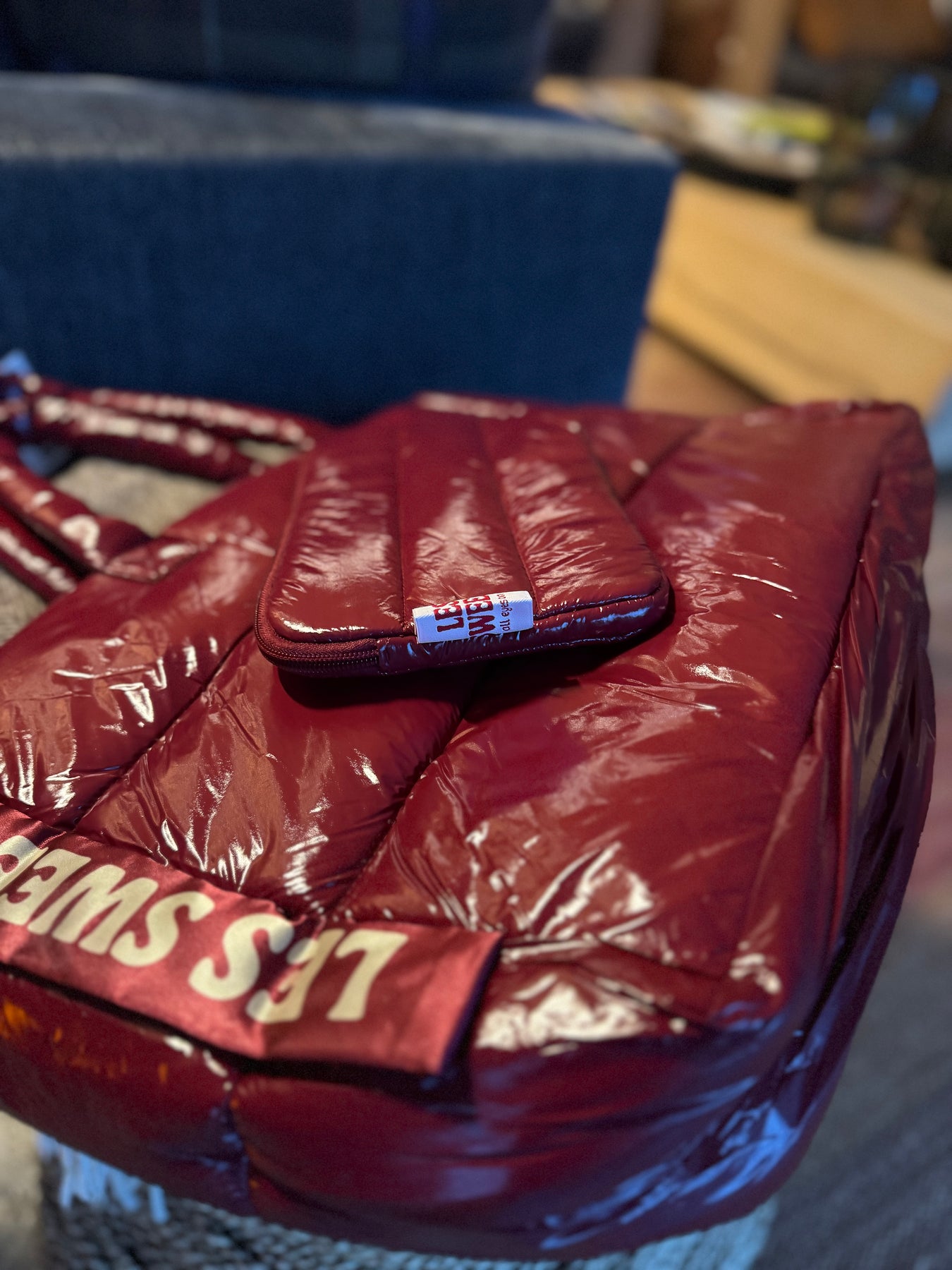 Burgundy, padded, and surprisingly spacious — the ultimate glam-on-the-go pouch. (25 x 25cm)